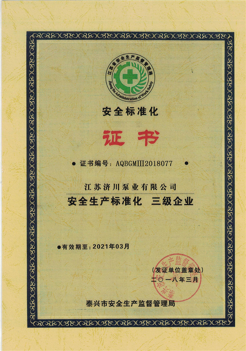 安全標(biāo)準(zhǔn)化證書
