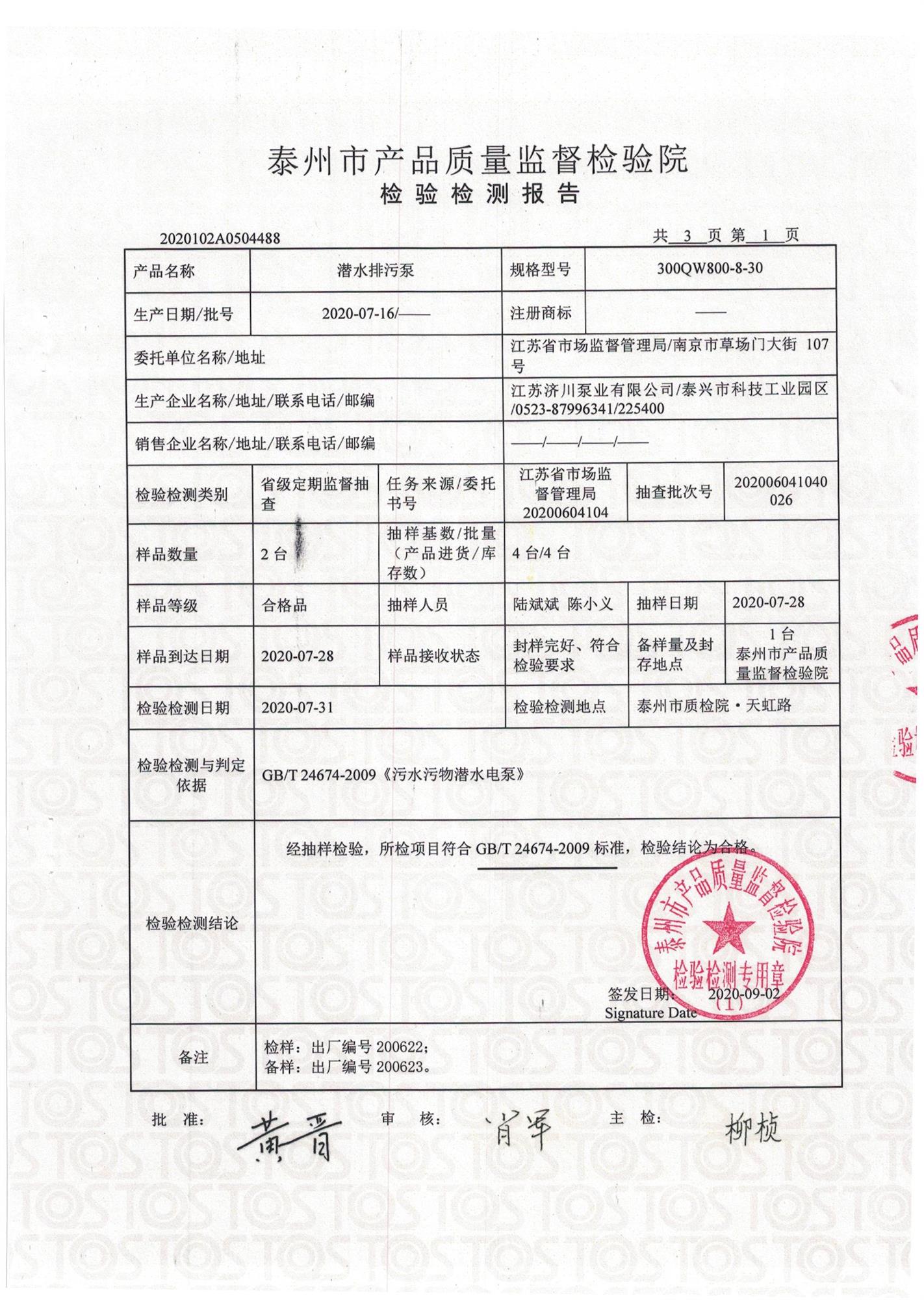 30kw潛水排污泵檢測報告